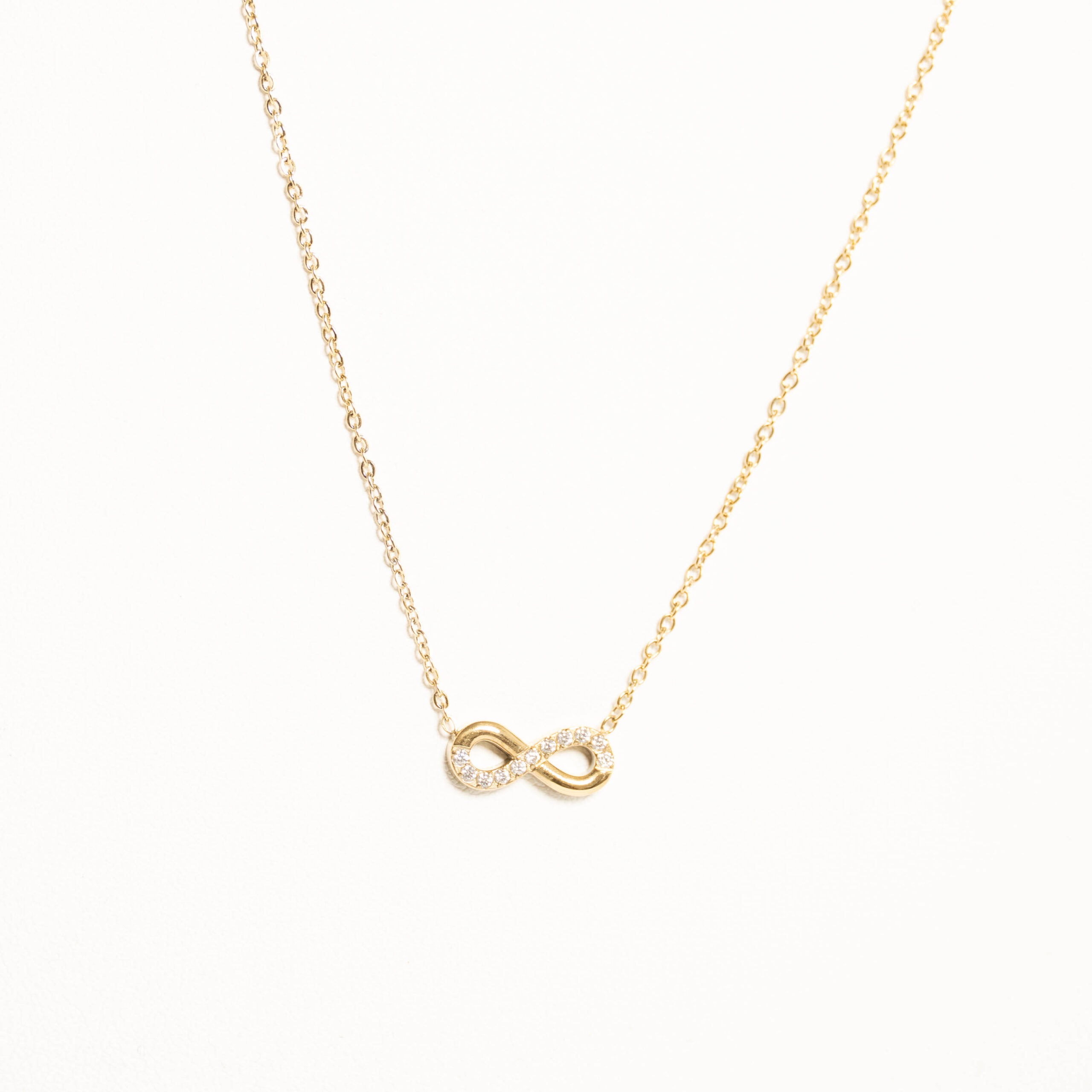 Łańcuszek z zawieszką nieskończoności z cyrkoniami – kolor złoty – stal chirurgicznej