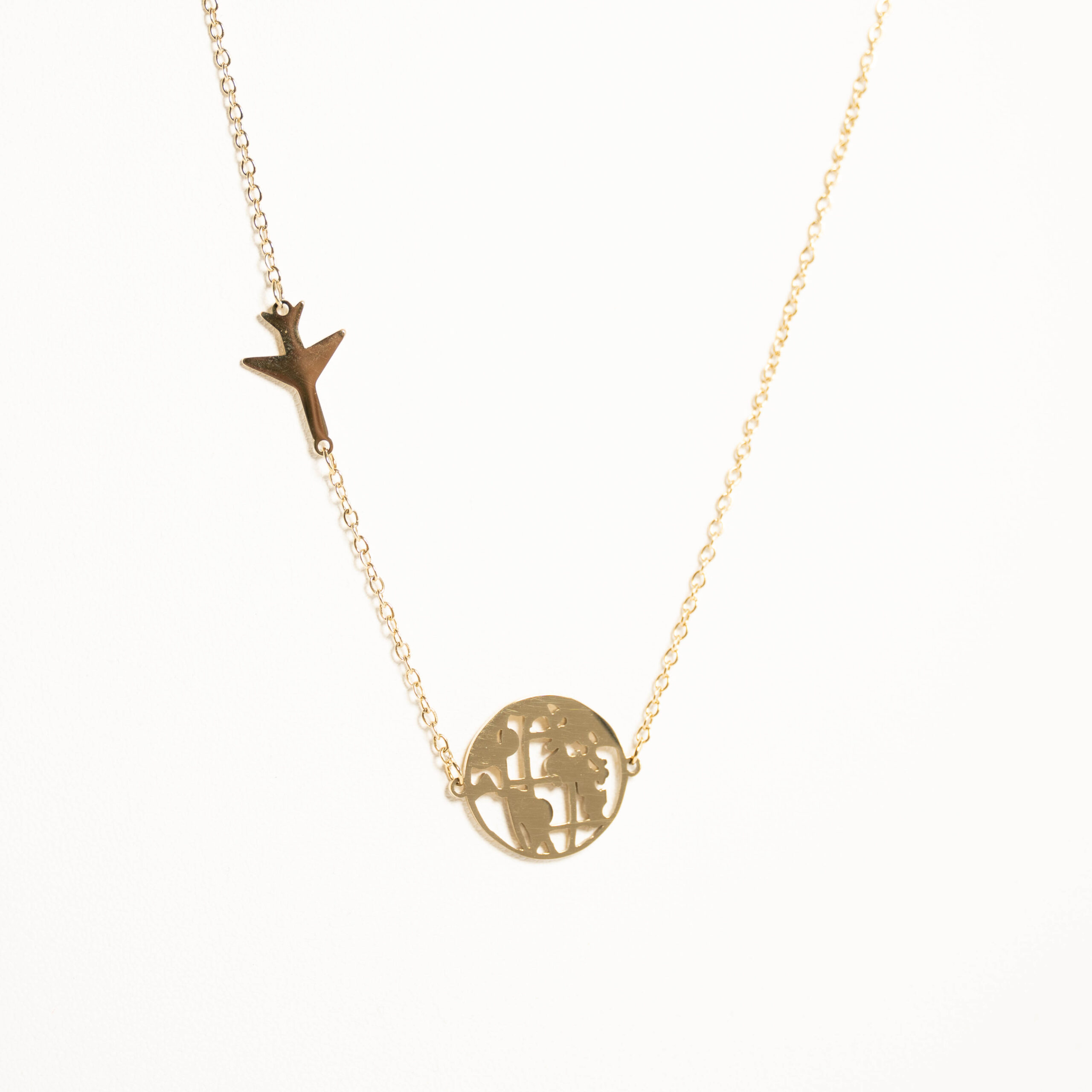 Łańcuszek z zawieszkami samolotu i globusa – kolor złoty – podróżniczka