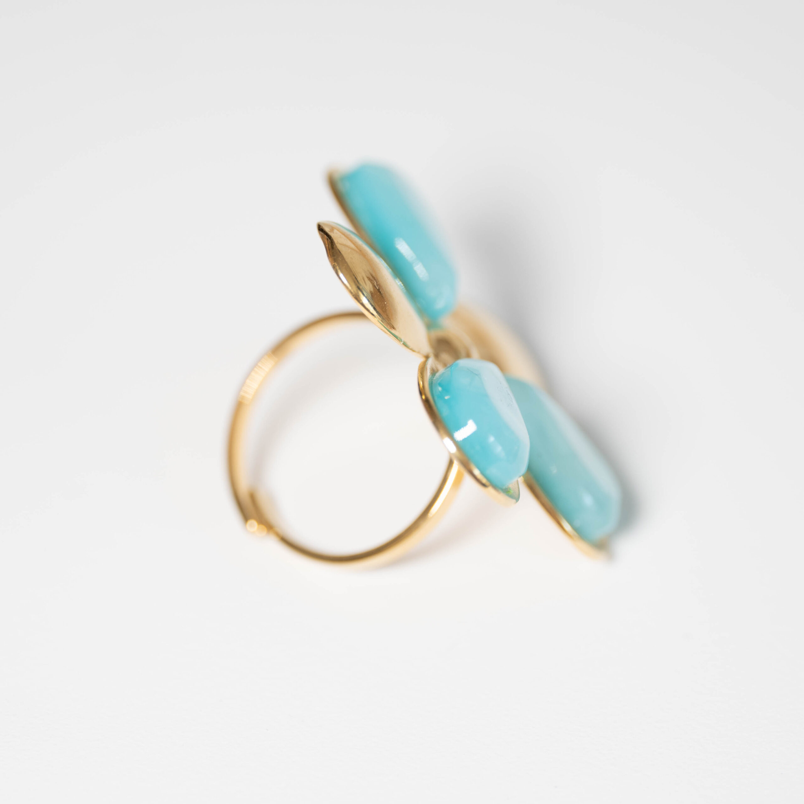 Pierścionek turkusowy kwiat – regulowany ze stali chirurgicznej – złoty