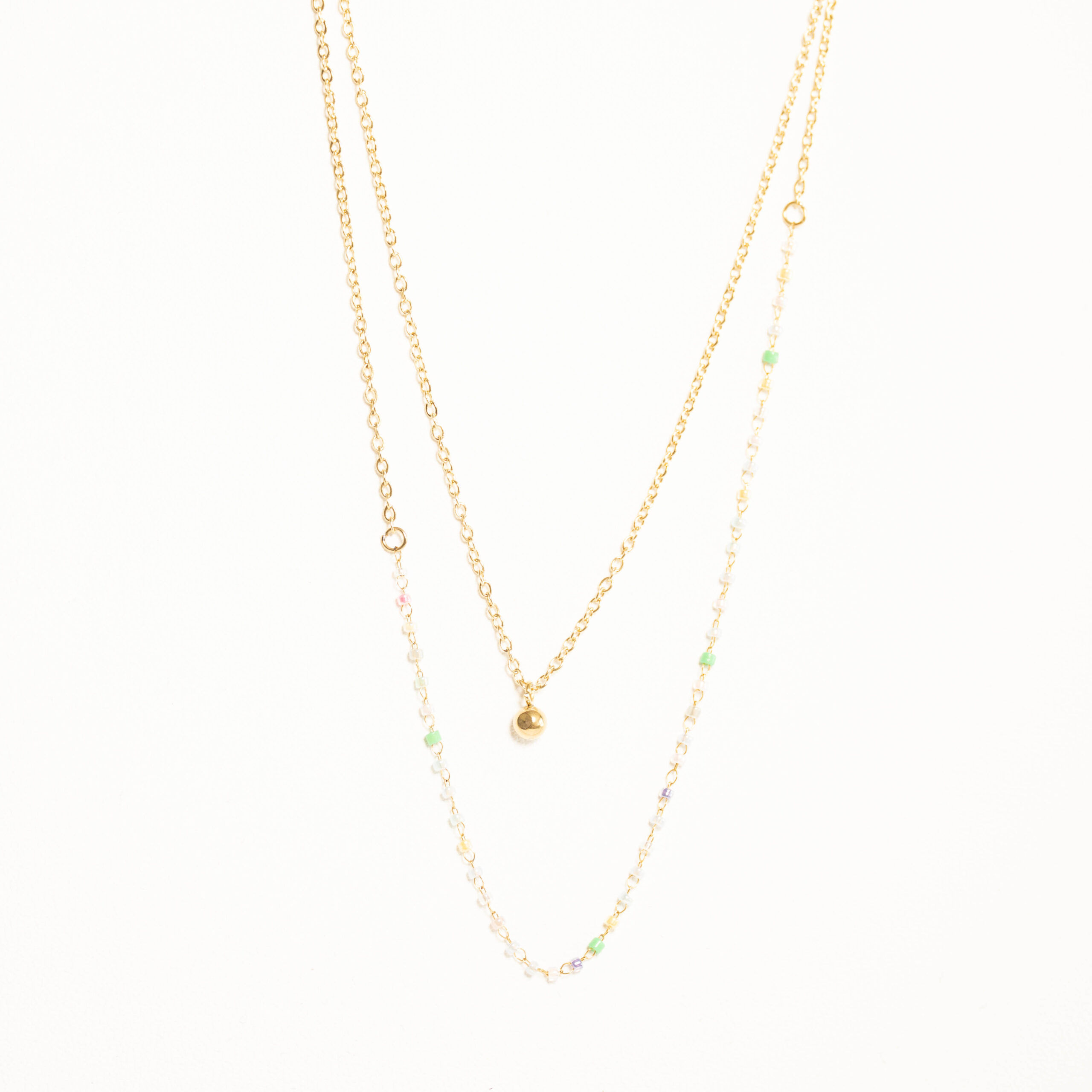 Podwójny łańcuszek z koralikami – zielony