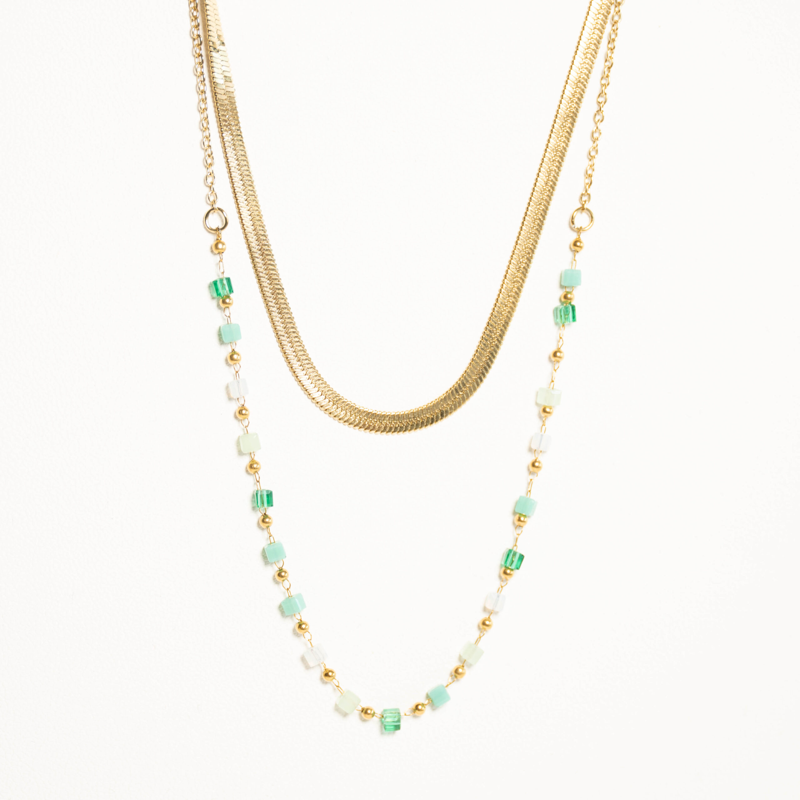 Podwójny łańcuszek ze żmijką i kolorowymi koralikami – kolor złoty