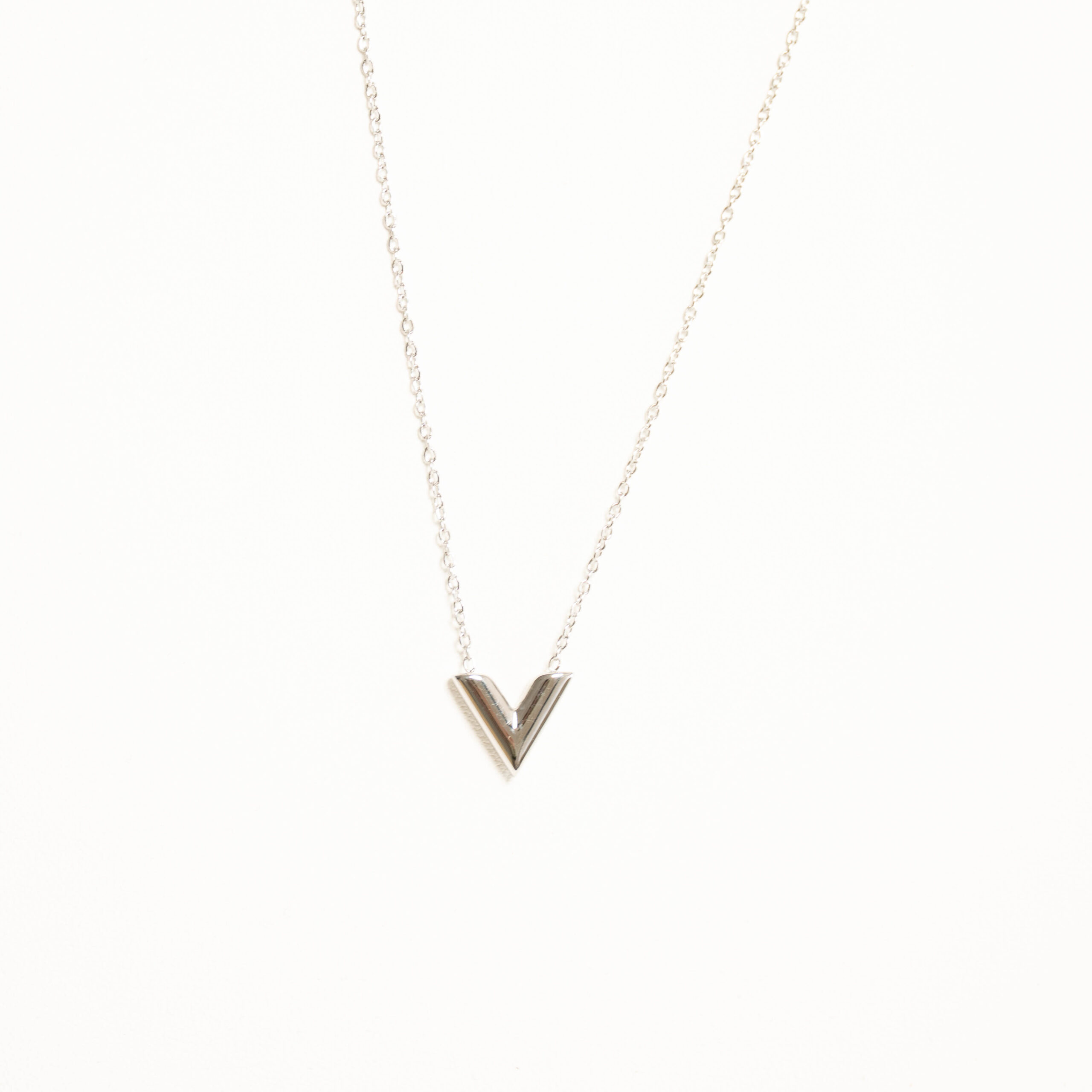 Nowoczesna prostota z wyraźnym akcentem. Naszyjnik Vibe to połączenie minimalizmu i symbolicznej formy – zawieszka w kształcie litery V osadzona na delikatnym łańcuszku ze stali chirurgicznej 316L w kolorze srerba przyciąga uwagę czystą linią i geometrycznym wyrazem.